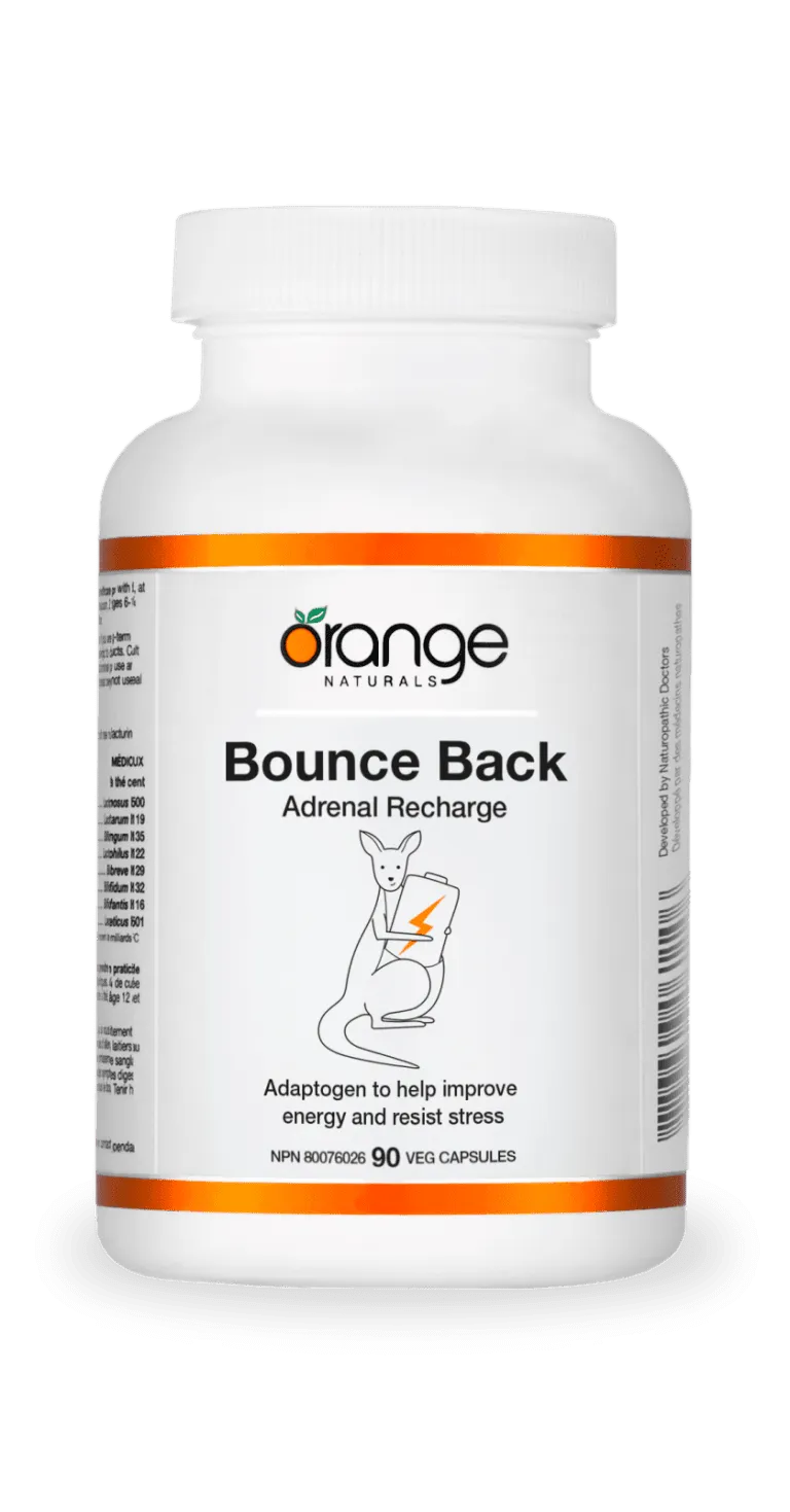 Tired of feeling exhausted, stressed and like you’re running on empty? Bounce Back Adrenal Recharge formula will have you hopping back into your full energetic self in no time. This potent combination of herbal ingredients, B vitamins and amino acids, will help you recharge and reset (before you can order your next extra shot espresso latte). Designed to help your adrenal glands (your little stress managing glands that sit above the kidneys) – bounce back! This recharging formula contains ashwagandha to help lower stress and boost immunity, siberian ginseng to fight fatigue and astragalus to help you feel rejuvenated. But, that’s not all – key B vitamins (B5 and B6), L-tyrosine amino acid, Schisandra and rhodiola herbs, provide added nutrients your adrenal glands require during short and long term exposure to stress. Chronic physical, mental and even emotional strain can wreak havoc on your nervous system. Fatigue and low energy are common symptoms of an overstimulated nervous system and adrenal fatigue. Bounce Back offers you the support you need to safely and gently manage the impact of life’s demands and stressors. Time to power up, adrenal recharge and Bounce Back.