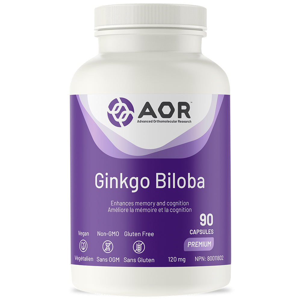 Ginkgo Biloba by AOR provides a high-potency, standardized extract that supports memory, mental clarity, and overall cognitive function. This ancient medicinal herb is particularly beneficial for promoting healthy cerebral blood flow and antioxidant protection for brain cells.