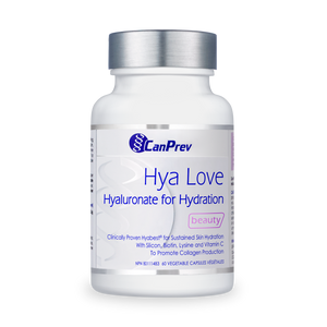 CanPrev’s Hya Love formula features Hyabest®, a form of hyaluronic acid known as sodium hyaluronate —clinically proven to enhance skin hydration. Hyaluronic acid occurs naturally in the dermal layer of skin and is responsible for keeping the epidermis looking plump and hydrated. However, our supply of hyaluronic acid depletes as we age, causing dryness in the skin and leading to more visible wrinkles.