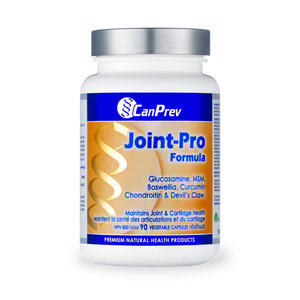 CanPrev’s Joint-Pro™ is a supportive therapy for maintaining joint and cartilage health. Joint-Pro™ contains glucosamine hydrochloride, a naturally occurring compound the body uses to make cartilage, bones, tendons, ligaments and the synovial fluid that cushions the joints. Glucosamine is especially effective when paired with chondroitin sulfate and a combination of herbs like boswellia and devil’s claw.
