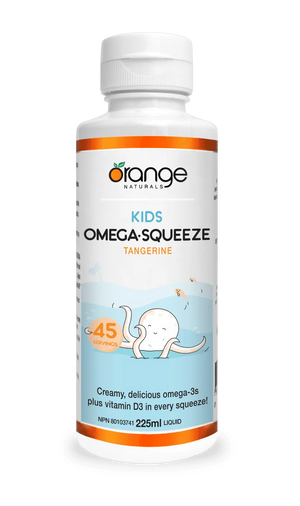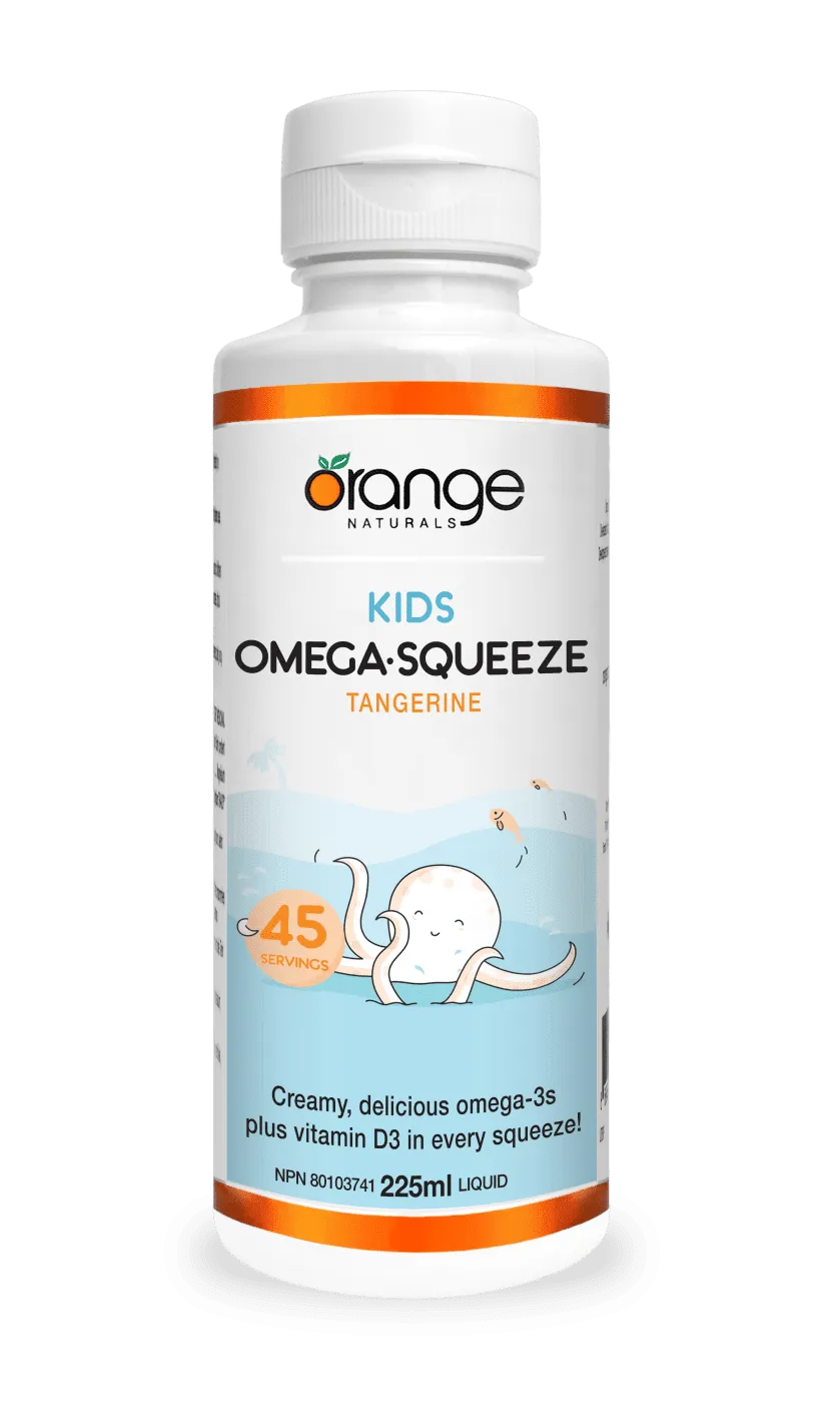 - Creamy, delicious tangerine flavour that kids will love. Their food preferences may include fish and flax seeds one day in the future, but for now, Omega Squeeze is here.