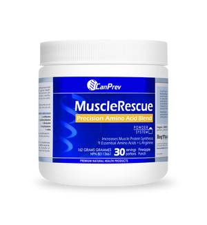 CanPrev’s MuscleRescue is an optimized formula powered by Reginator®, a proprietary blend featuring the most efficient ratio of essential amino acids (EAAs) needed for protein synthesis and muscle regeneration.