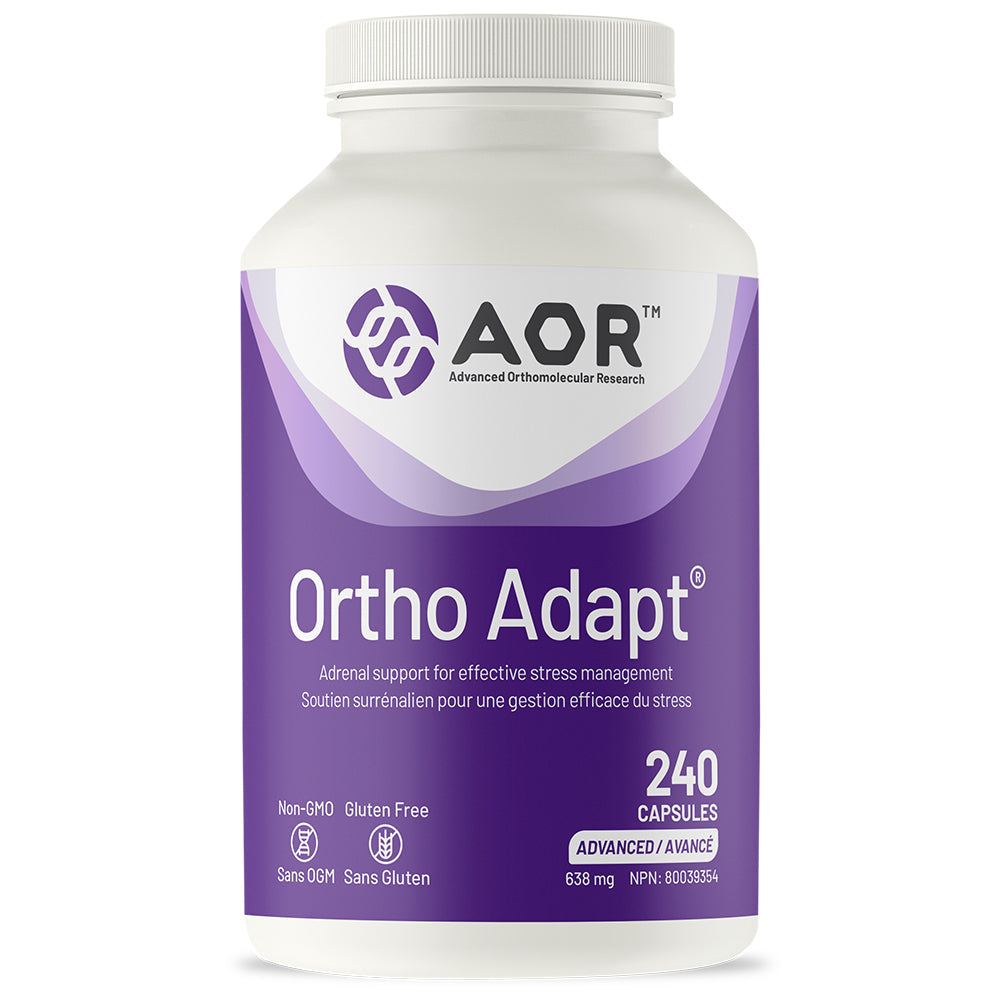 Ortho Adapt® is AOR’s comprehensive anti-stress formula designed to support adrenal function, enhance physical and mental performance, and improve the body’s resilience during periods of stress. It brings together adrenal gland extract, essential vitamins, and adaptogenic herbs for targeted adrenal support from multiple angles.