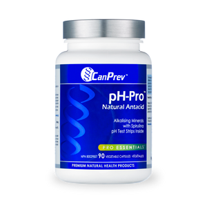 CanPrev’s pH-Pro™ is an innovative alkalizing (acid reducing) product that provides approximately twice the amount of acid neutralising capacity in a single vegetable capsule compared to pH balancing tablets. The formula is blended in a base of all natural spirulina, avoiding the need for artificial fillers and providing a rich whole food source of phytonutrients, carotene and B vitamins. pH-Pro™ comes in easy-to-swallow vegetable capsules and just one or two can achieve an alkalizing effect. Individuals suffering from acid reflux or GERD (gastroesophageal reflux disorder) also find pH-Pro™ very effective.