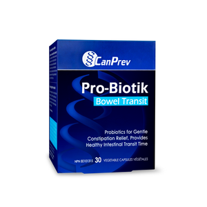 CanPrev’s Pro-Biotik Bowel Transit is a convenient, shelf stable, one-a-day probiotic with a select strain of Bifidobacterium. This clinically proven strain promotes bowel movement regularity, relieves constipation, and encourages healthy digestion by improving bowel transit time.