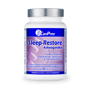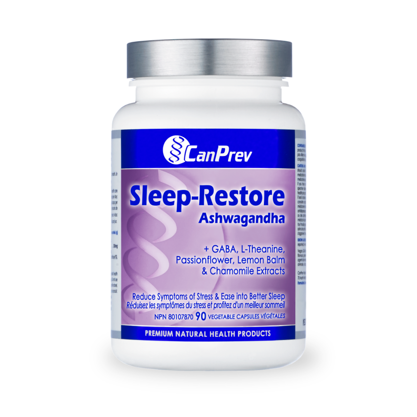 CanPrev’s Sleep-Restore Ashwagandha is formulated with an oasis of calmative herbs like lemon balm and passionflower to help reduce over-excitement and counteract the effects of cortisol on your body, mind, and sleep. With added GABA and L-theanine to help relieve tension. Restore body and mind by soothing stress and easing into a better bedtime.