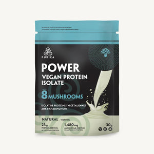PURICA Power uniquely combines vegan protein with micronized Chaga, Lions Mane, Red Reishi, Cordyceps, Shiitake, Maitake, Agaricus and Coriolus mushrooms, offering a natural, clean fuel for the body. This protein powder blends fermented pea, organic sprouted brown rice, and ProHydrolase® enzymes, delivering a distinct mix that's both nutritious and delicious, even with water.
