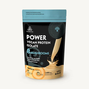 PURICA Power uniquely combines vegan protein with micronized Chaga, Lions Mane, Red Reishi, Cordyceps, Shiitake, Maitake, Agaricus and Coriolus mushrooms, offering a natural, clean fuel for the body. This protein powder blends fermented pea, organic sprouted brown rice, and ProHydrolase® enzymes, delivering a distinct mix that's both nutritious and delicious, even with water.