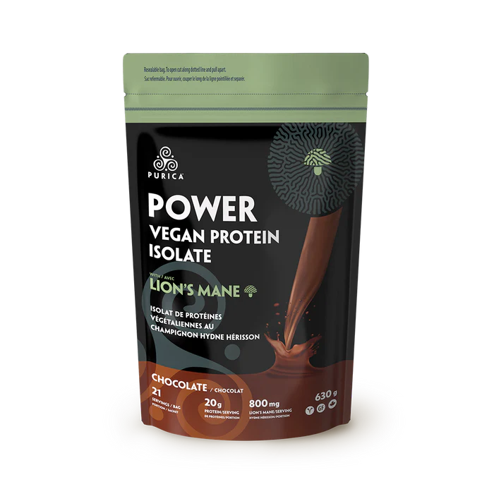 PURICA Power, a unique blend of vegan protein and Lion's Mane mushrooms, offers a natural and potent fuel for the body. It features fermented pea protein isolate, organic sprouted brown rice, and ProHydrolase® for enhanced digestion. Gluten-free, vegan, and non-GMO, this protein powder excels in taste and mixability, available in Chocolate, Vanilla, and Natural Unflavoured.